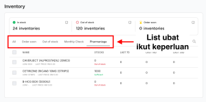 Anda boleh terus susun ubat ikut vendor, keperluan atau tahap kepentingan — tanpa perlu semak satu-satu.